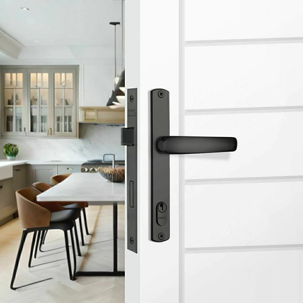 A fechadura 323Z Externa em Latão E22 da Papaiz proporciona segurança e tranquilidade para seu espaço. Seu mecanismo eficiente garante um travamento seguro, enquanto o acabamento em preto fosco acrescenta um toque de estilo à sua porta. Seu perfil estreito de 22mm é ideal para portas de alumínio, conferindo uma estética contemporânea.
