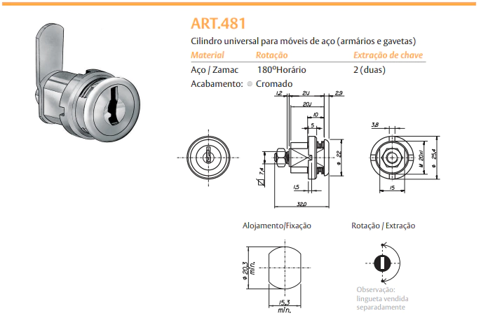 A Fechadura para Móveis de Aço ART 481 Com Linguetaé fabricada com materiais de alta qualidade, proporcionando segurança e durabilidade para seus pertences. Com design versátil e sofisticado, ela se adapta perfeitamente a diversos tipos de móveis, garantindo mais proteção e organização ao ambiente.