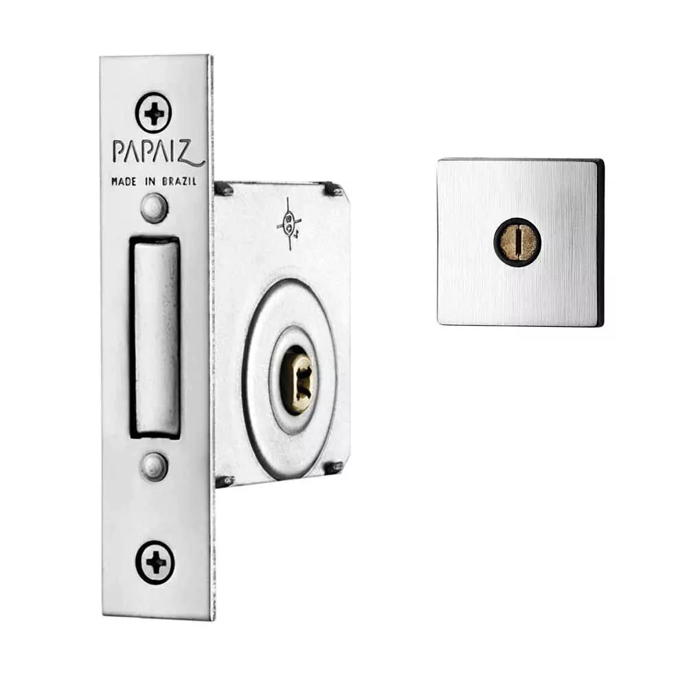 Modelo Tetra com trava auxiliar quadrada de 40mm, proporcionando maior segurança contra arrombamentos.